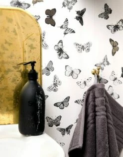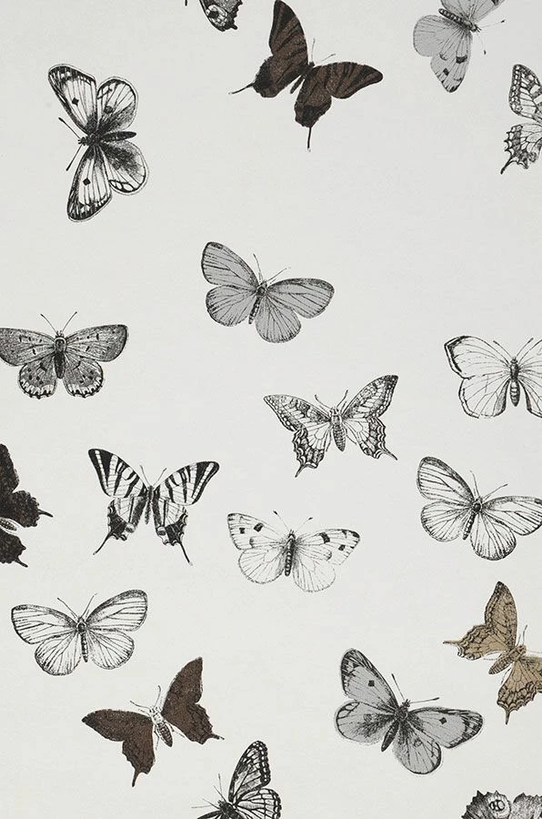Von nah betrachtet lassen sich viele wundervoll gezeichnete Schmetterlinge erkennen, von weitem ergibt sich bei dieser kunstvollen Vliestapete ein abstraktes modernes Muster im Schwarz-Weiß Design. Jeder Schmetterling hat seine feinen Details wie Pfauenauge oder Tupfentraum. Diese lebendige Tapete fordert das Auge und ist mit zahlreichen Farben kombinierbar.