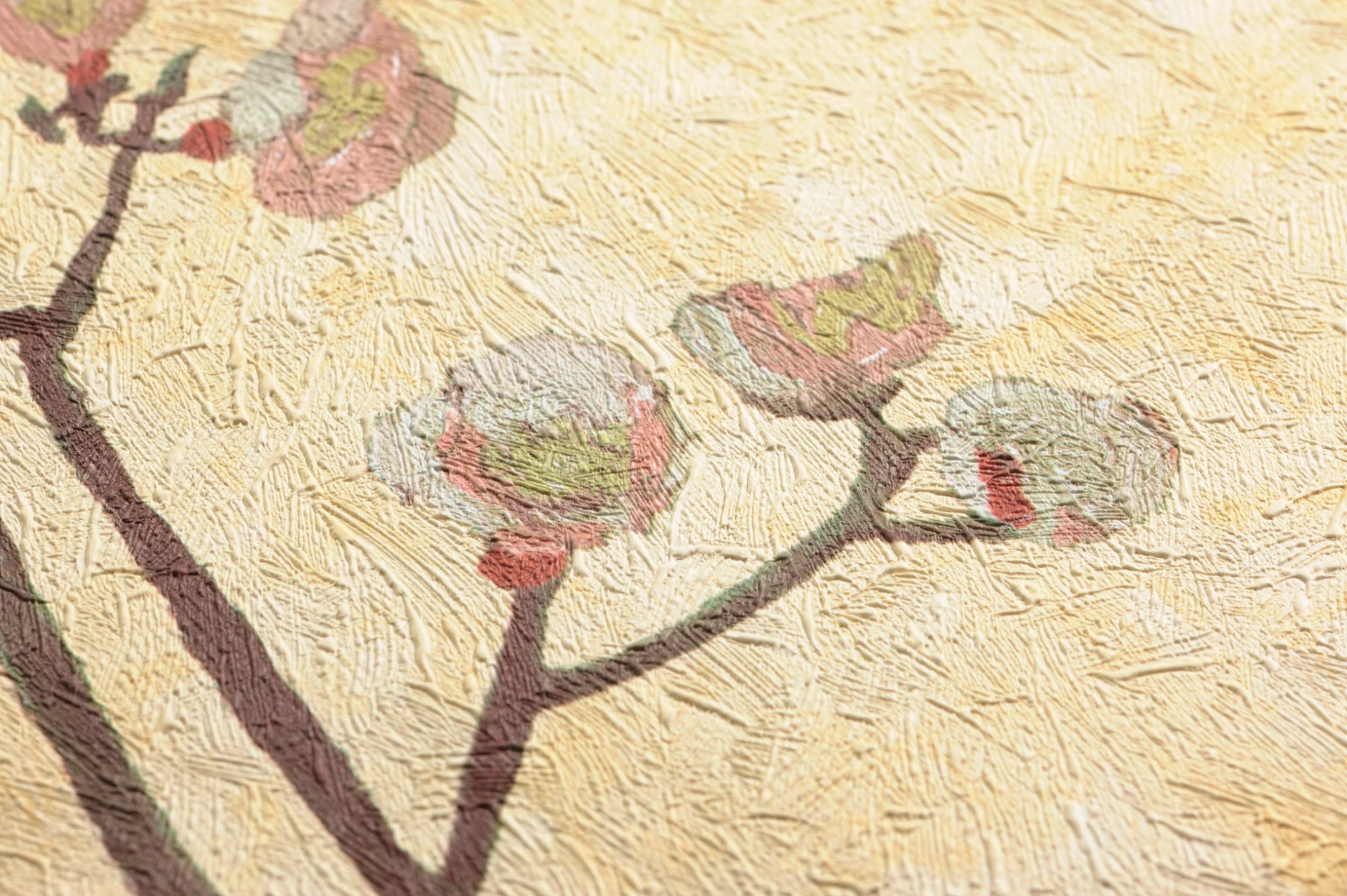 Blassgelb verleiht den blühenden Zweigen eine sehr appetitanregende Note und lässt feinen Mandelblütenduft förmlich in die Nase steigen. Nicht nur optisch, sondern auch haptisch ist die im Stil van Goghs gestaltete Designtapete ein Genuss. Noch dazu zeigt sich die vinylbeschichtete Oberfläche extrem robust und scheuerbeständig.