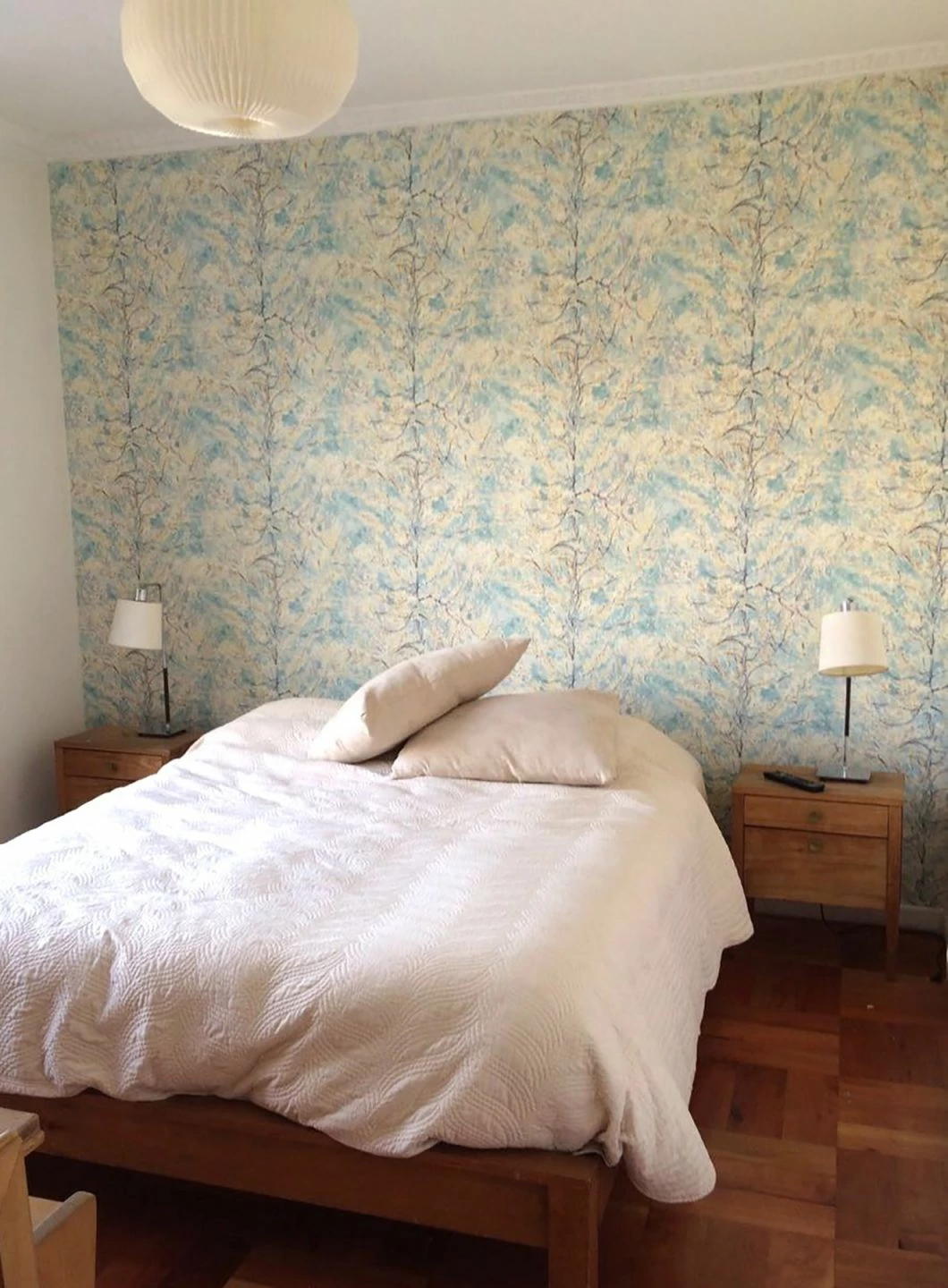 Zarte Blüten und Blätter an filigranen Zweigen, auf die Leinwand gebracht mit schwungvollen, ausdrucksstarken Pinselstrichen – das zeichnet die Gemälde der Mandelblüte von Vincent van Gogh aus. Derselbe Charakter findet sich auf dieser Vliestapete, in deren Oberfläche die einzelnen Pinselstriche fühlbar eingeprägt sind. Die blassgelben und cremeweißen Blüten mit Akzenten in Pastellviolett und Violettblau vor dem pastelltürkisfarbenen Himmel bringen den Frühling in Ihren Raum.