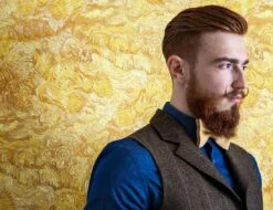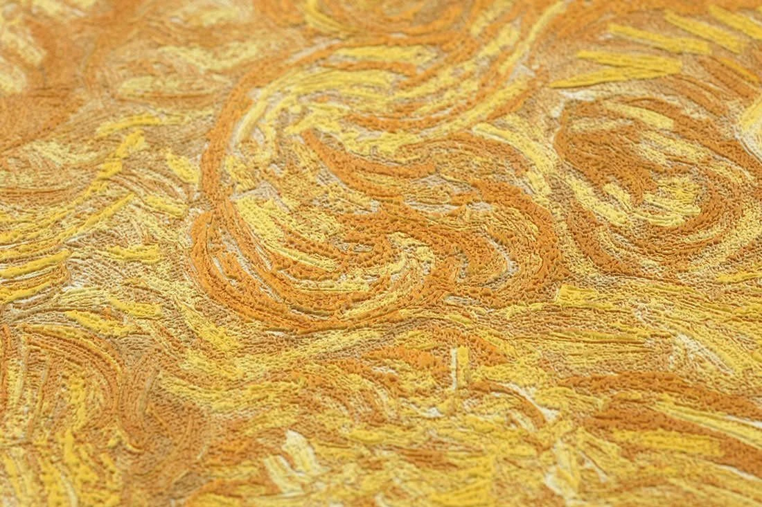 Kraftvoll leuchtende Gelbtöne und ausdrucksstarke Pinselstriche, die in der Vinyloberfläche als feine Oberflächenstruktur zu spüren sind, rufen die Assoziation eines Gemäldes von Van Gogh hervor. Die Weizenfelder, die der niederländische Maler auf die Leinwand bannte, strahlen die gleiche Intensität und Bewegtheit aus. So holen Sie sich die Wärme und das Licht des Spätsommers in Ihren Raum. Das Vinyl ist waschbeständig und damit auch geeignet für Ihr Bad.