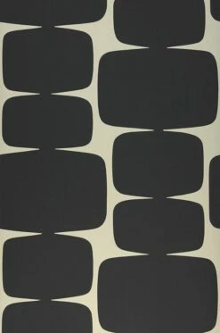 Starke Formen, inspiriert vom Stil der 70er Jahre, und ein kräftiger Kontrast zwischen den grafischen Elementen in Schwarz und dem kieselgrauen Hintergrund machen die Vintage-Tapete zu einem attraktiven Blickfang. Sie verträgt ausdrucksstarke Retro-Möbel und kräftige Farben als Gegengewicht. So kreieren Sie einen extravaganten Raum voll von der unbändigen Lebensfreude und Dramatik der 70er.
