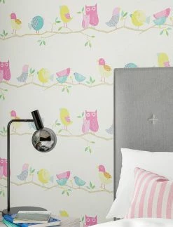 Zierliche Vögel in zarten Pastellfarben und klaren, einfachen Formen schaffen eine freundliche, frühlingshafte Stimmung im Kinderzimmer, das mit dieser Vliestapete dekoriert wird. Die Farbnuancen Hellgelbgrün, Minttürkis und Rosa lassen Ihnen bei der Entscheidung für die passenden Möbel eine große Auswahl.