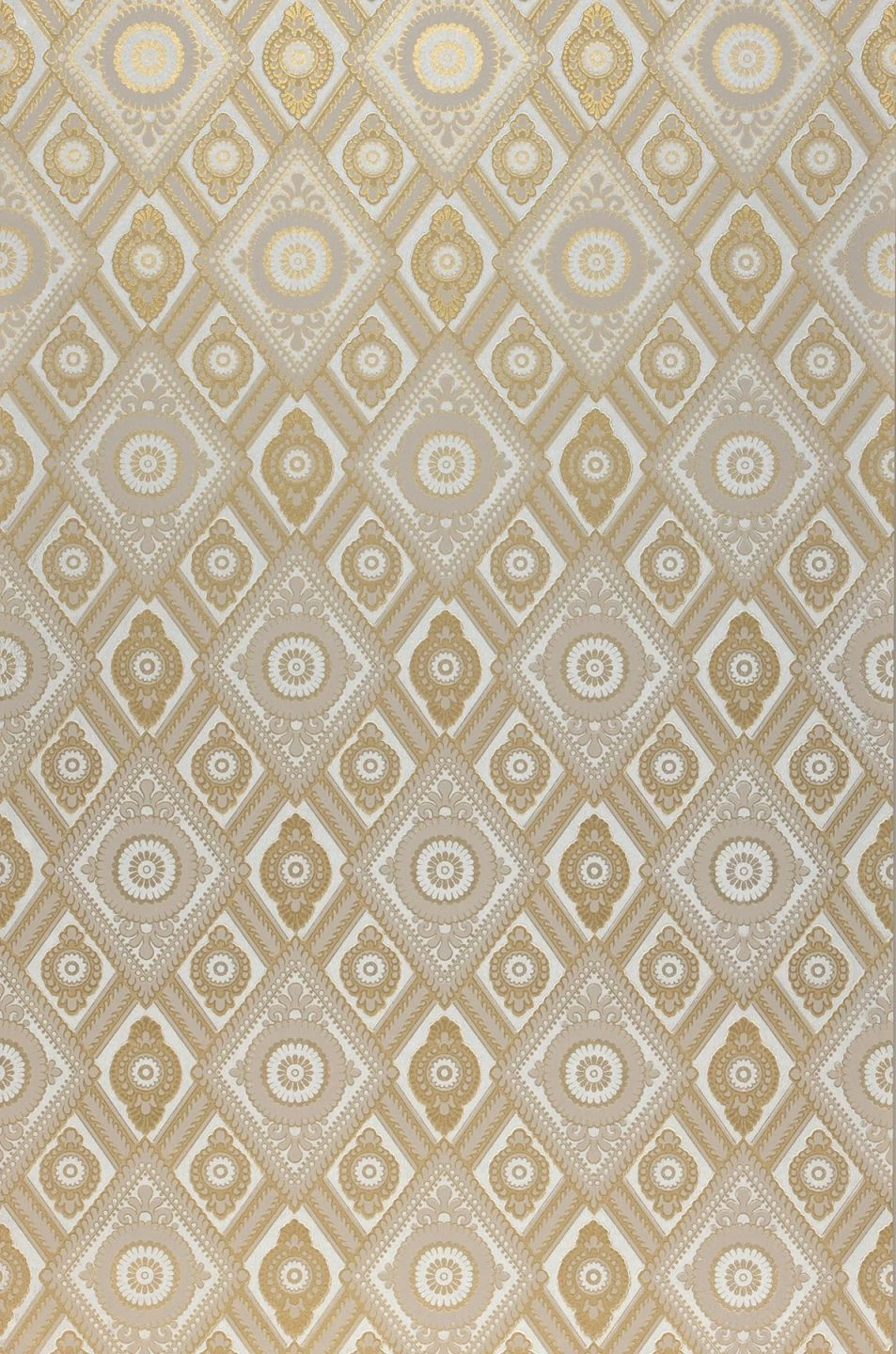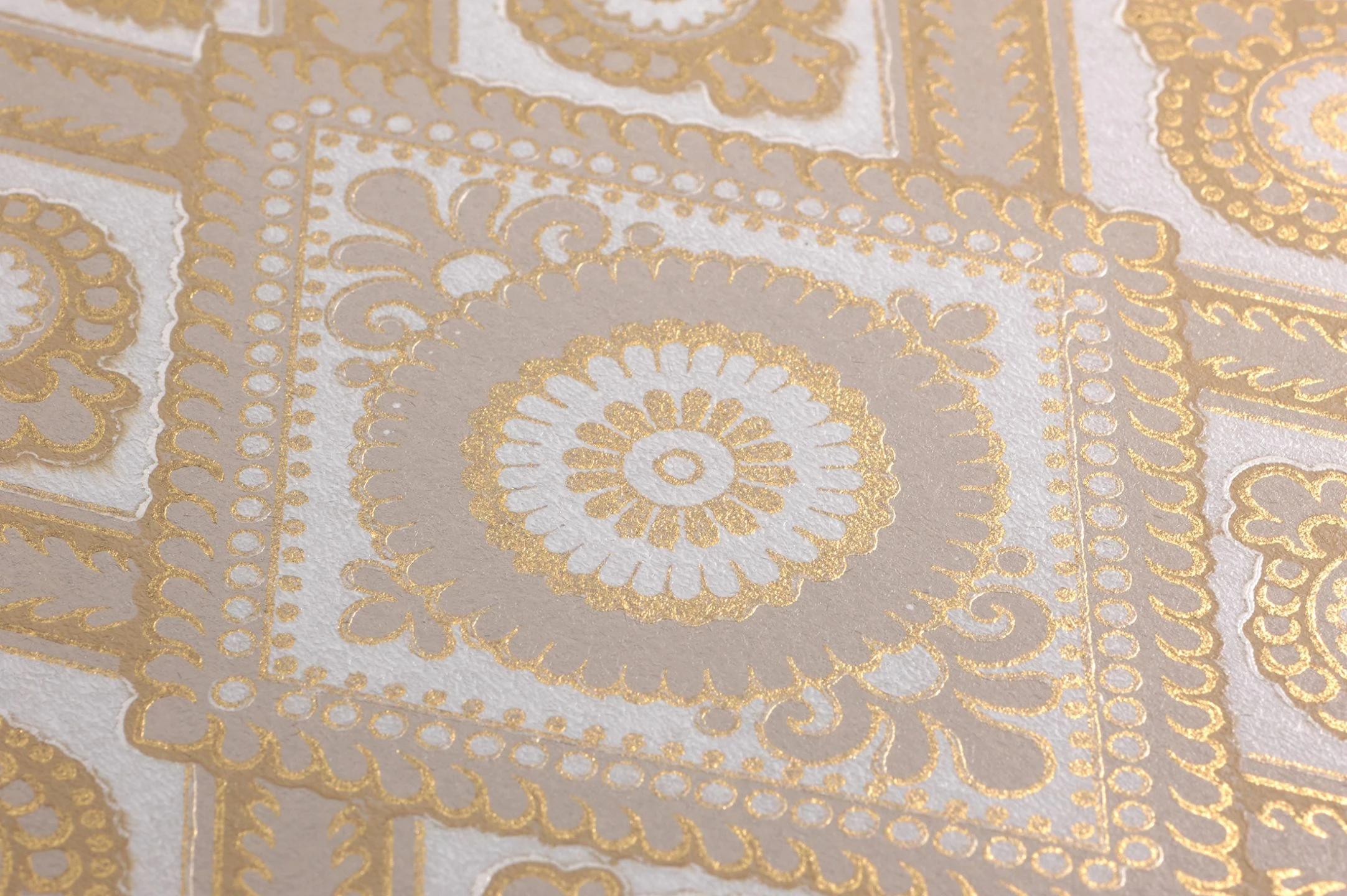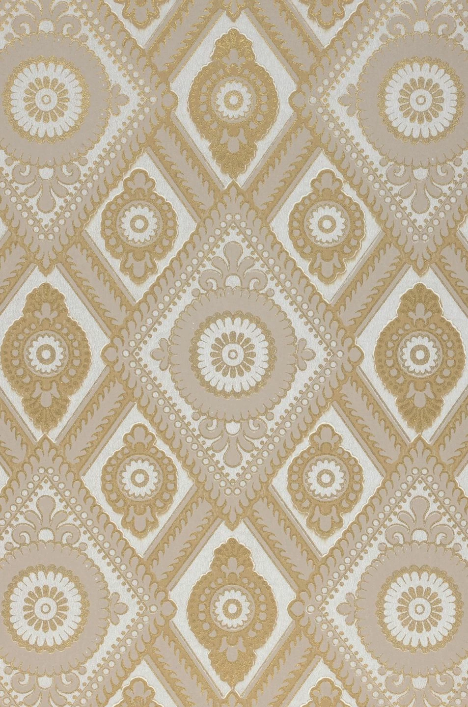 Das Wechselspiel von Licht und Schatten, Tiefe und Ebenen ist für Klassiktapete William Ehrensache. Der raffinierte Farbenmix aus Weiß, Currygelb, Hellbeigegrau und Gold Schimmer verbindet feine Eleganz mit einer sehr modernen Gesamtwirkung. Kombinieren Sie dazu Einrichtungsgegenstände aus Metall und Messing und mit haptisch interessanten Stoffen.