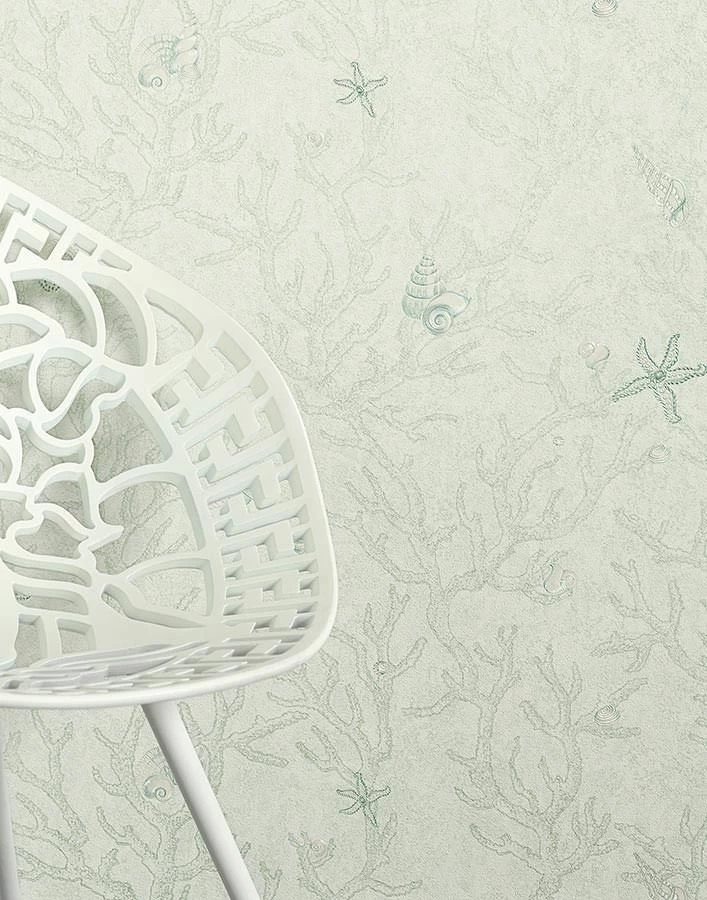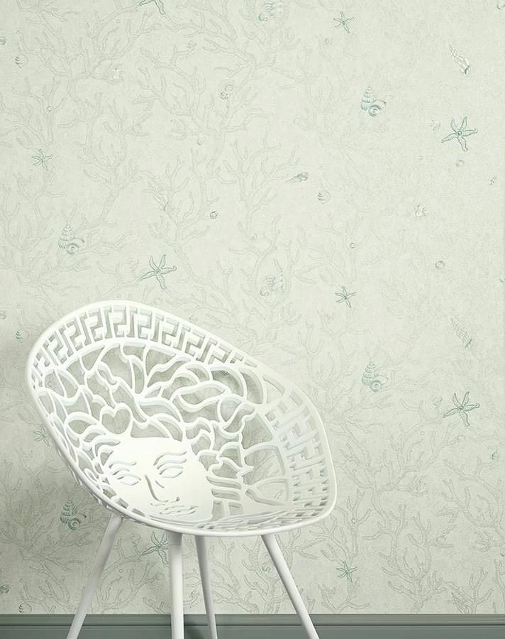Die Schätze des Meeres vereint die Versace Luxustapete in erhabener Eleganz. Korallen, Seesterne, Muscheln, Schneckenhäuser sind zu entdecken. Die schimmernden Musterfarben lassen einzelne Elemente im Licht hervorblitzen. Durch die feine Oberflächenstruktur der hochwertigen Vinyltapete entsteht eine plastische Tiefe, in die man am liebsten eintauchen möchte.