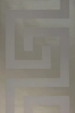 Zwei Schattierungen von Grau bilden auf der von der griechischen Antike inspirierten Tapete aus dem Hause Versace ein raumgreifendes Mäandermuster. Das Hellgrau und das leicht schimmernde Steingrau setzen sich trotz ihrer engen Verwandtschaft reizvoll voneinander ab. Verstärkt wird dieser Effekt durch die Vinyloberfläche, deren Optik an ein kostbares Gewebe erinnert. Die Oberfläche ist gleichzeitig scheuerbeständig und damit bestens badezimmergeeignet.