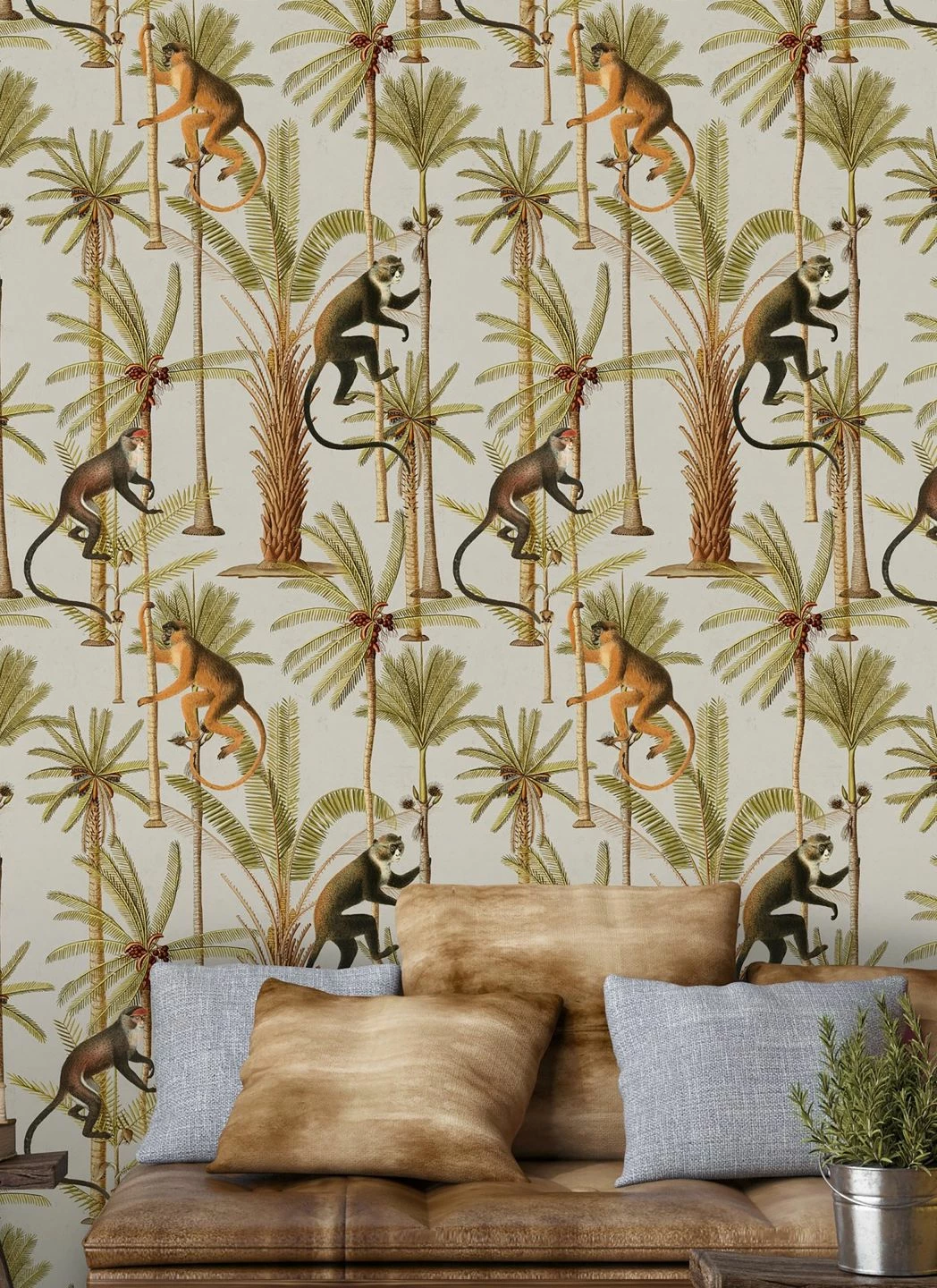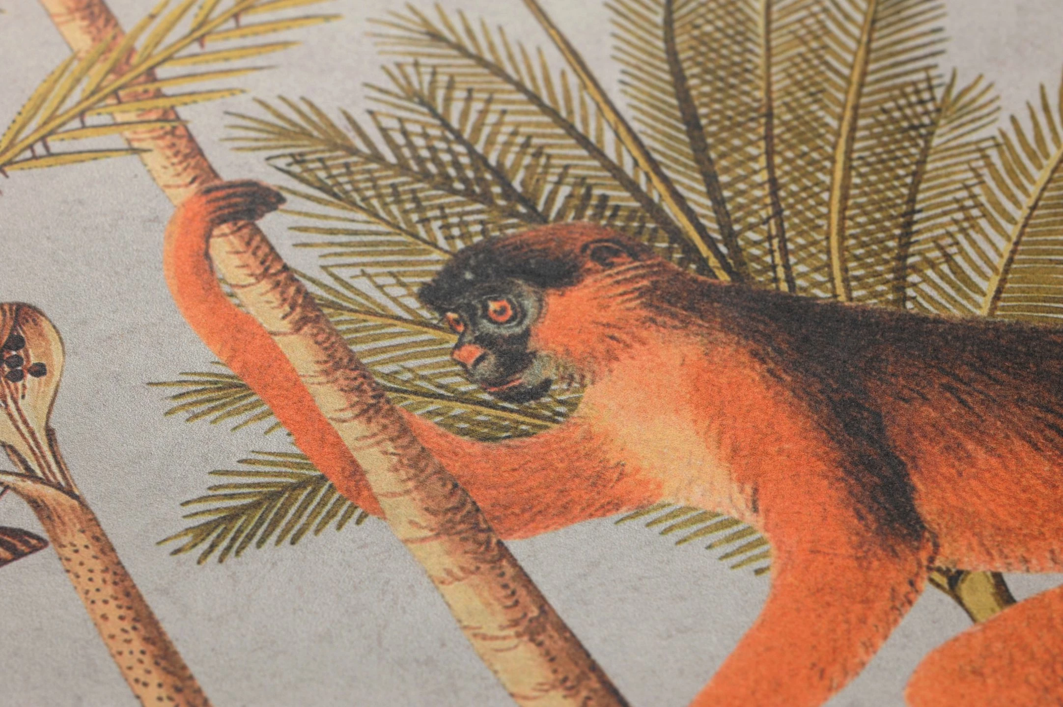 Affen sieht man hierzulande normalerweise nur bei einem Besuch im Zoo – und auf diesem ausgefallenen Wandbild! Auf den hohen Palmen klettern ganz unterschiedliche Affen umher. Ihre Gesichter und ihre Fellzeichnung, die filigranen Blätter und Früchte der Palmen und die Struktur der Stämme sind voller Liebe zum Detail abgebildet. So bringt das dreiteilige Wandbild Barbados ein bisschen von der Atmosphäre eines tropischen Landes in Ihren Raum.