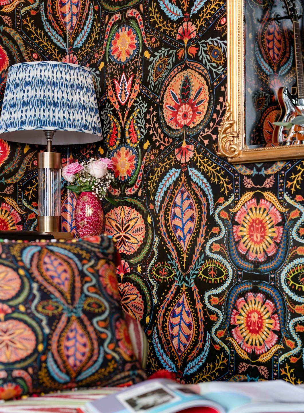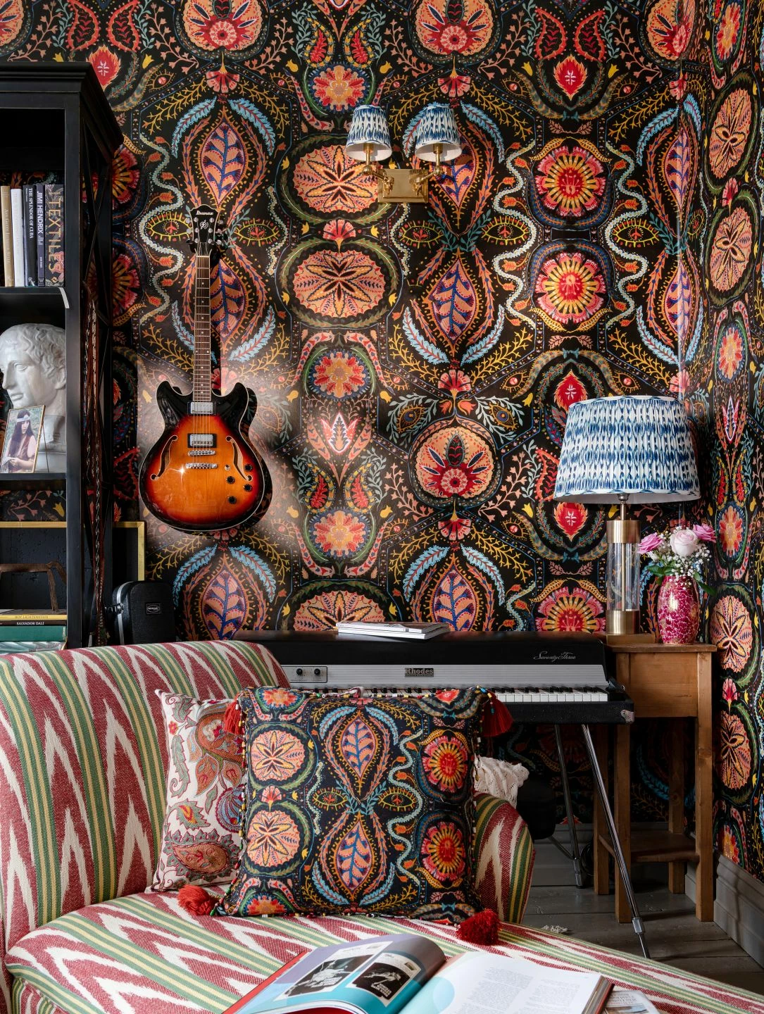 - MusterfarbeBlautöne, Gelbtöne, Grün, Lachsrot, Rottöne